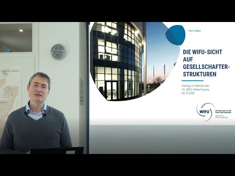 Weitere InformationenDer Vortrag „Die WIFU-Sicht auf Gesellschafterstrukturen“ von Prof. Dr. Tom Rüsen wurde zur Vorbereitung auf das 19. WIFU-Online-Forum aufgezeichnet.